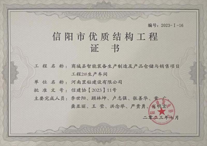 關鍵詞:河南罡鉆信陽市優質結構工程證書